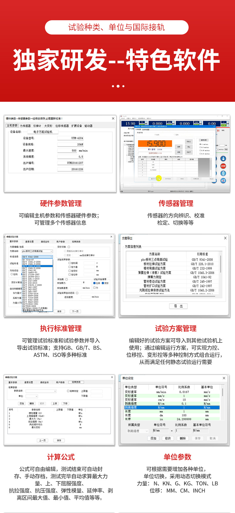 4.Windows XP操作系统下的全开放式测试软件,用户可使用软件现有功能完成几乎所有的力学测试项目,也可根据自己的实际需要自行编辑测试方法。