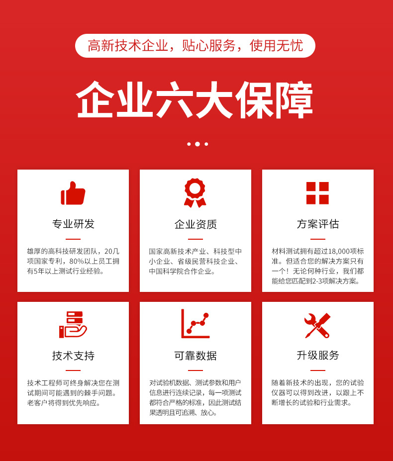5.优于0.5级的测力准确度,1/200,000的力值分辩率,变形测量分辨率可达0.0001mm、